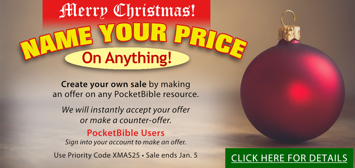 When you are ready to expand your PocketBible library, use the in-app store or visit us here to purchase additional Bibles or books.
