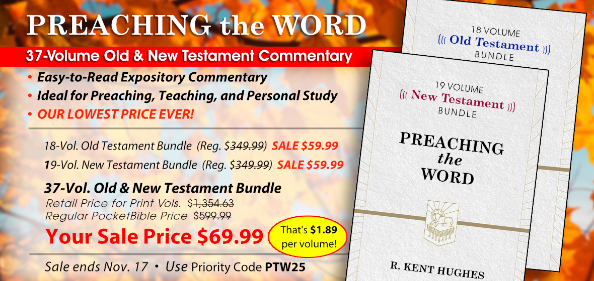 Get the entire Preaching the Word commentary series, regularly $599.99, for just $69.99. Separate OT and NT volumes are also on sale.