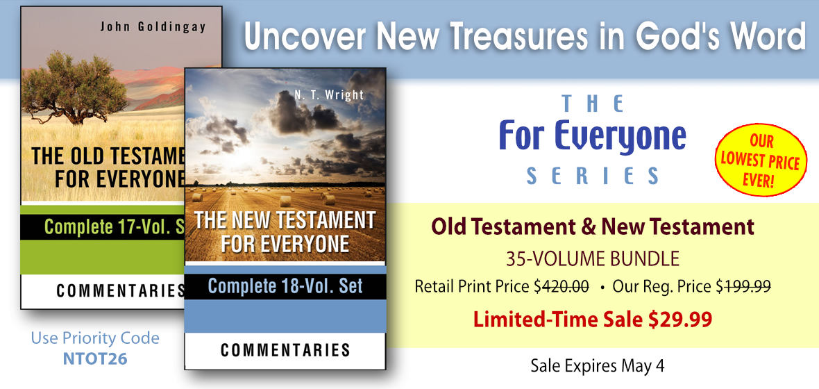 Our lowest price on this valuable commentary series. Get the Old Testament and New Testament for Everyone regularly $199.99 for just $29.99 during this limited-time sale.