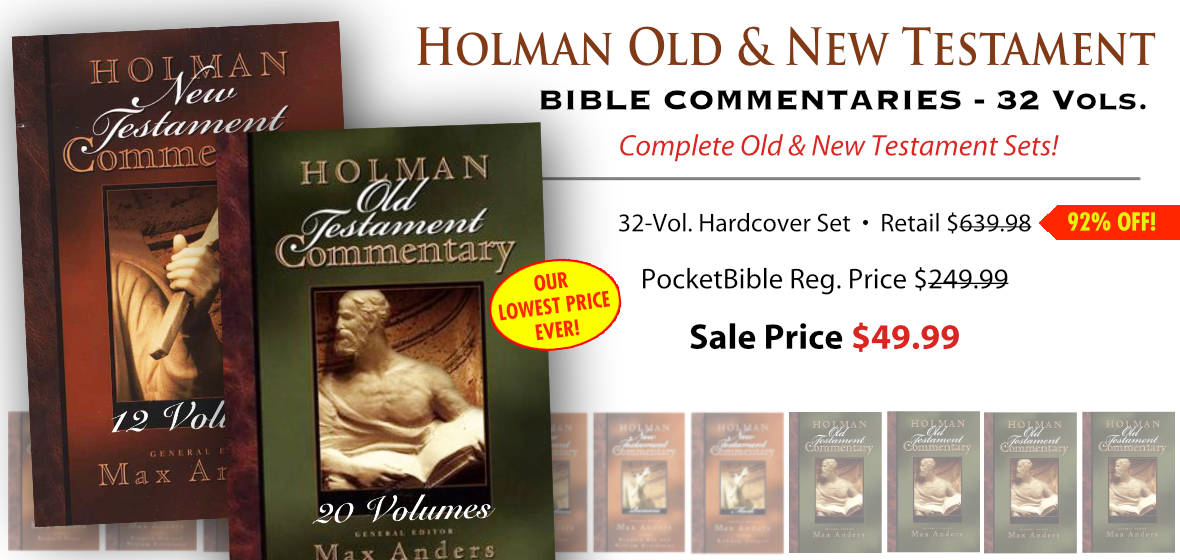 Sale Extended! Save 80% on one of our most popular commentaries. Regularly $249.99, get the Holman Old and New Testament Bible Commentaries for just $49.99 for a limited time. BONUS Add the Holman Illustrated Bible Dictionary, regularly $29.99 for just $9.99.